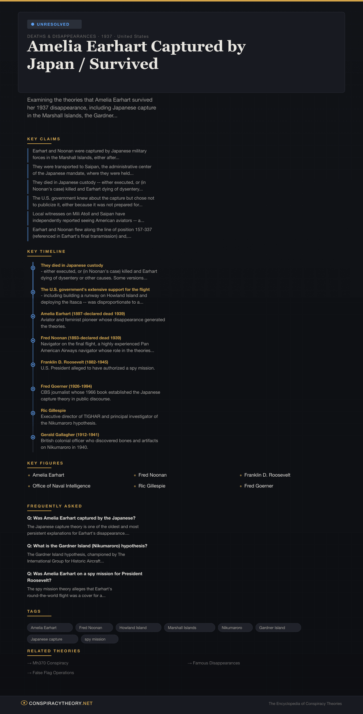Amelia Earhart Captured by Japan / Survived — Conspiracy Theory Timeline 1937, United States