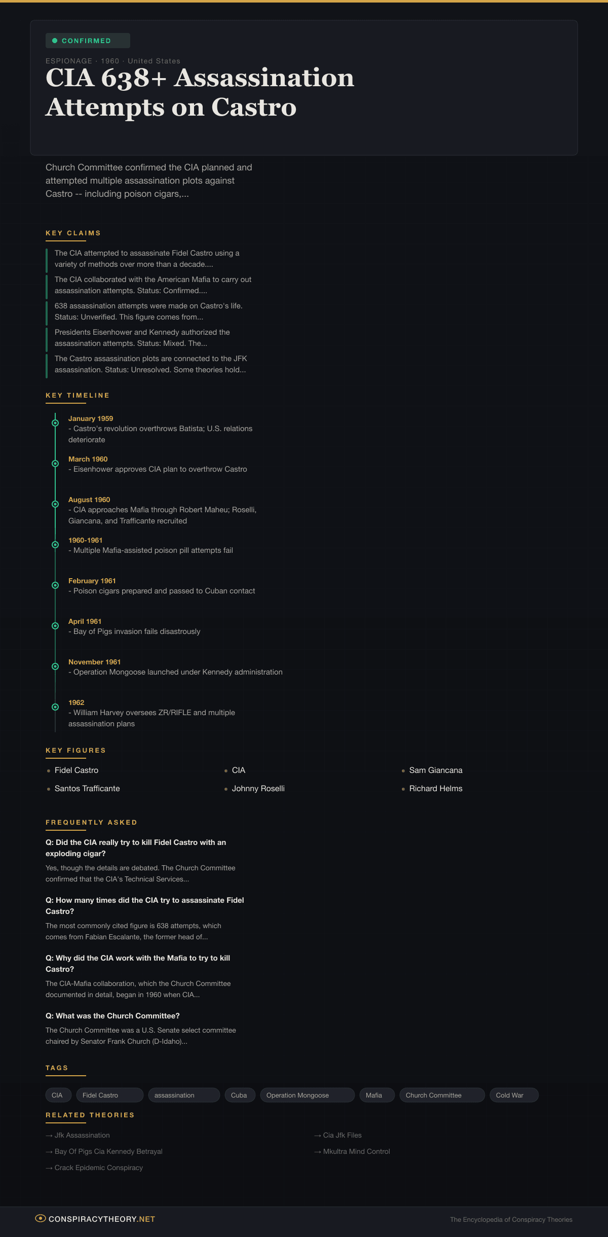 CIA 638+ Assassination Attempts on Castro — Conspiracy Theory Timeline 1960, United States