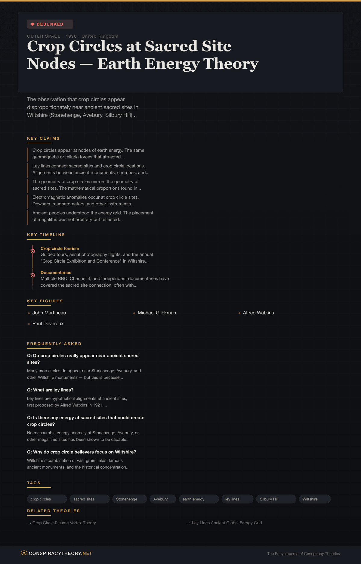 | Late 1970s | First modern crop circles appear in Hampshire/Wiltshire near ancient sites |
