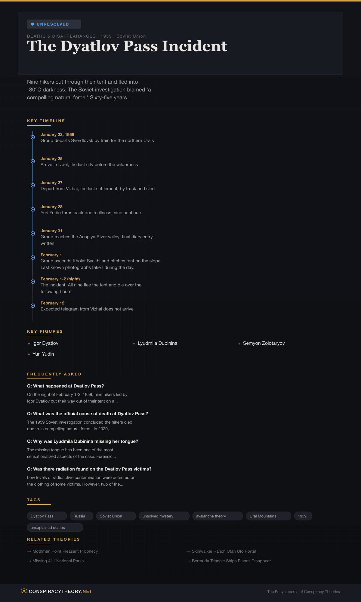 The Dyatlov Pass Incident — Conspiracy Theory Timeline 1959, Soviet Union