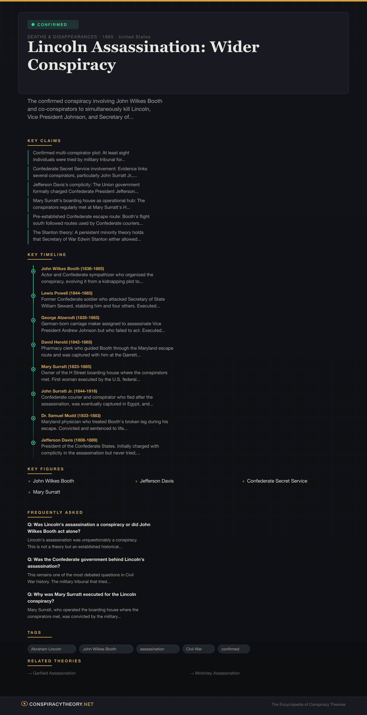 Lincoln Assassination: Wider Conspiracy — Conspiracy Theory Timeline 1865, United States