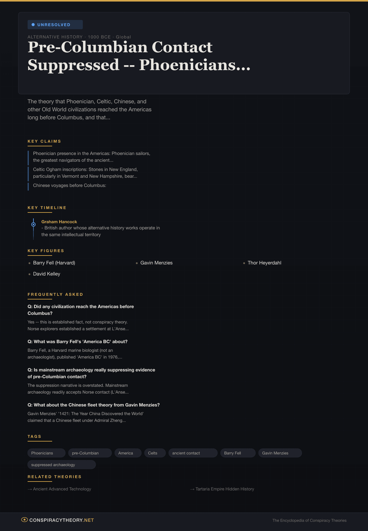 Pre-Columbian Contact Suppressed -- Phoenicians in America — visual timeline and key facts infographic