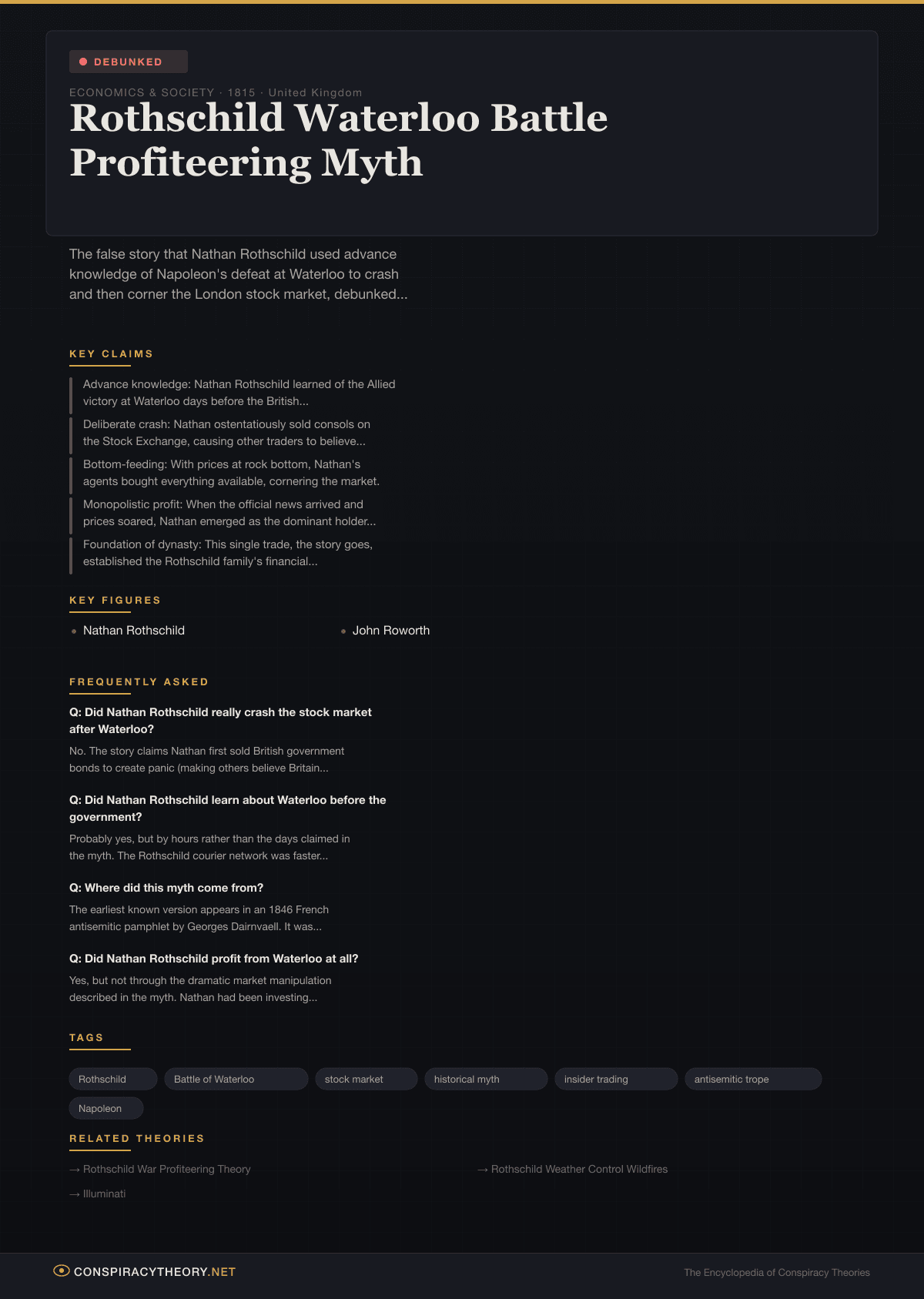 Rothschild Waterloo Battle Profiteering Myth — Conspiracy Theory Timeline 1815, United Kingdom