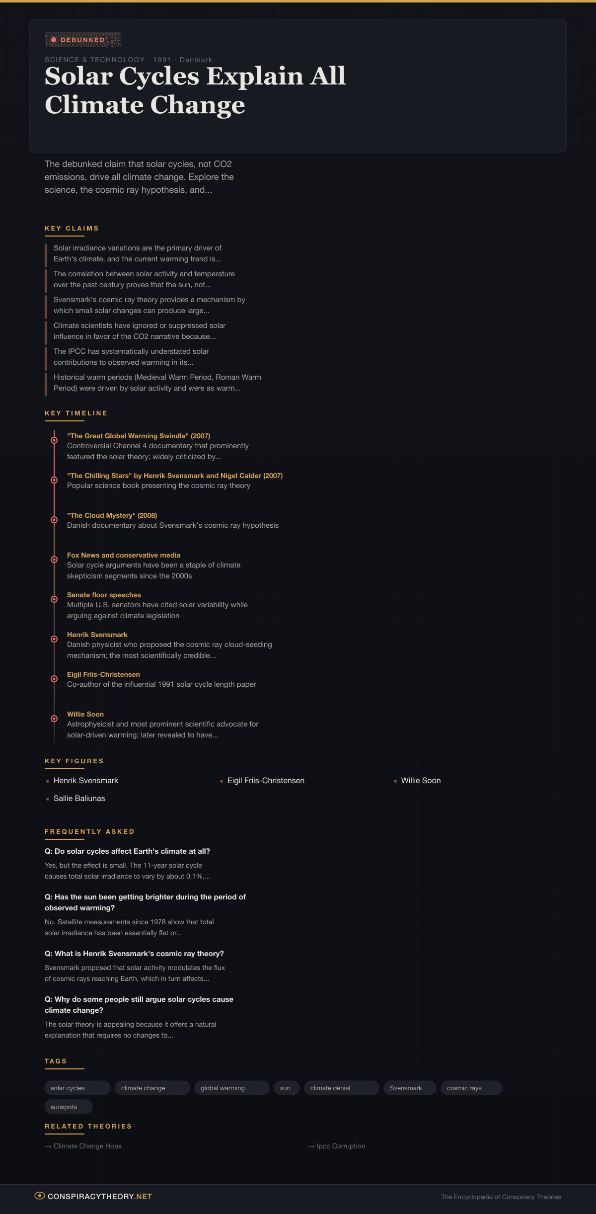 - “The Great Global Warming Swindle” (2007) — Controversial Channel 4 documentary that prominently featured the solar theory; widely criticized by scientists for misrepresenting data