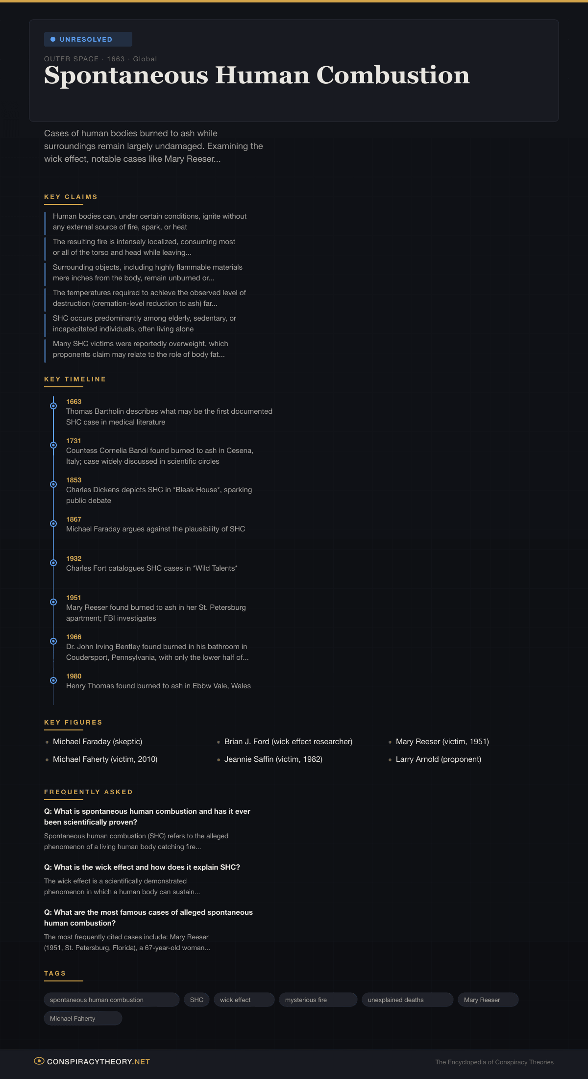 Spontaneous Human Combustion — Conspiracy Theory Timeline 1663, Global