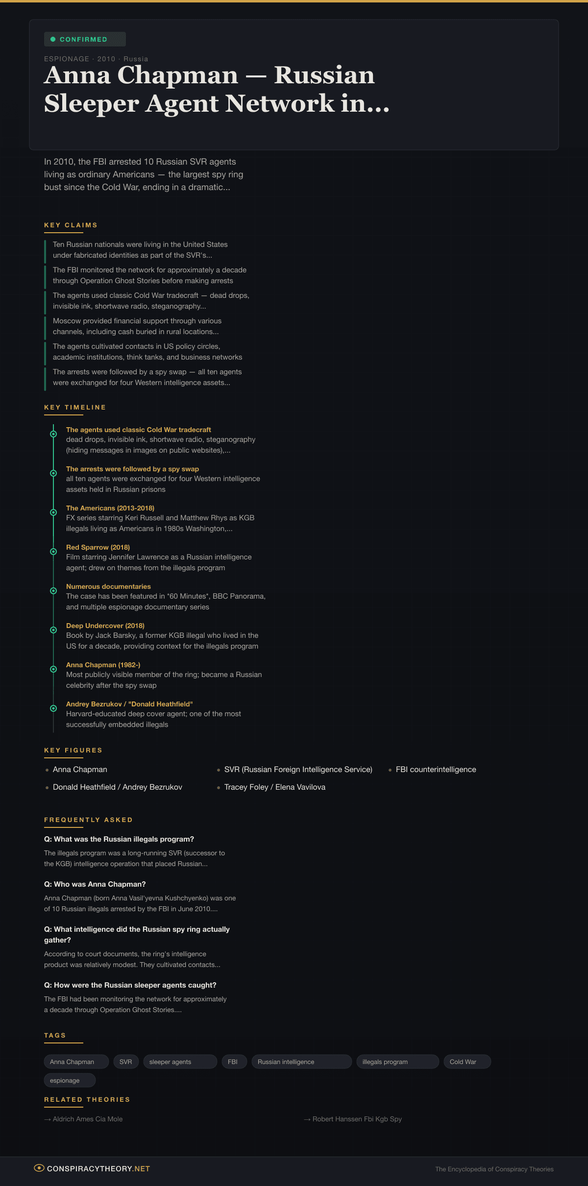 - Aldrich Ames — CIA’s Deadliest Mole — An earlier confirmed case of Russian espionage within American intelligence