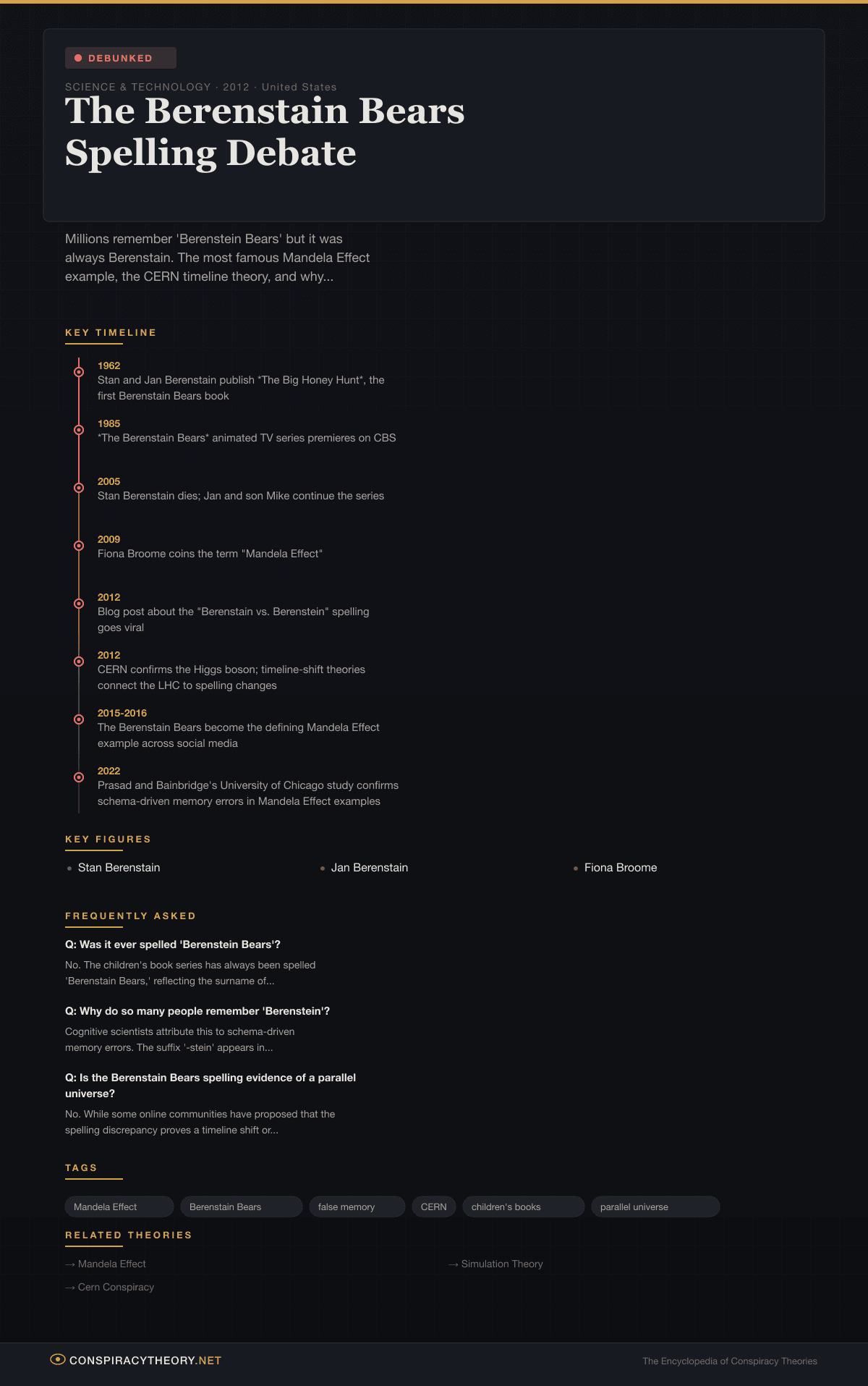 - 2015-2016 — The Berenstain Bears become the defining Mandela Effect example across social media