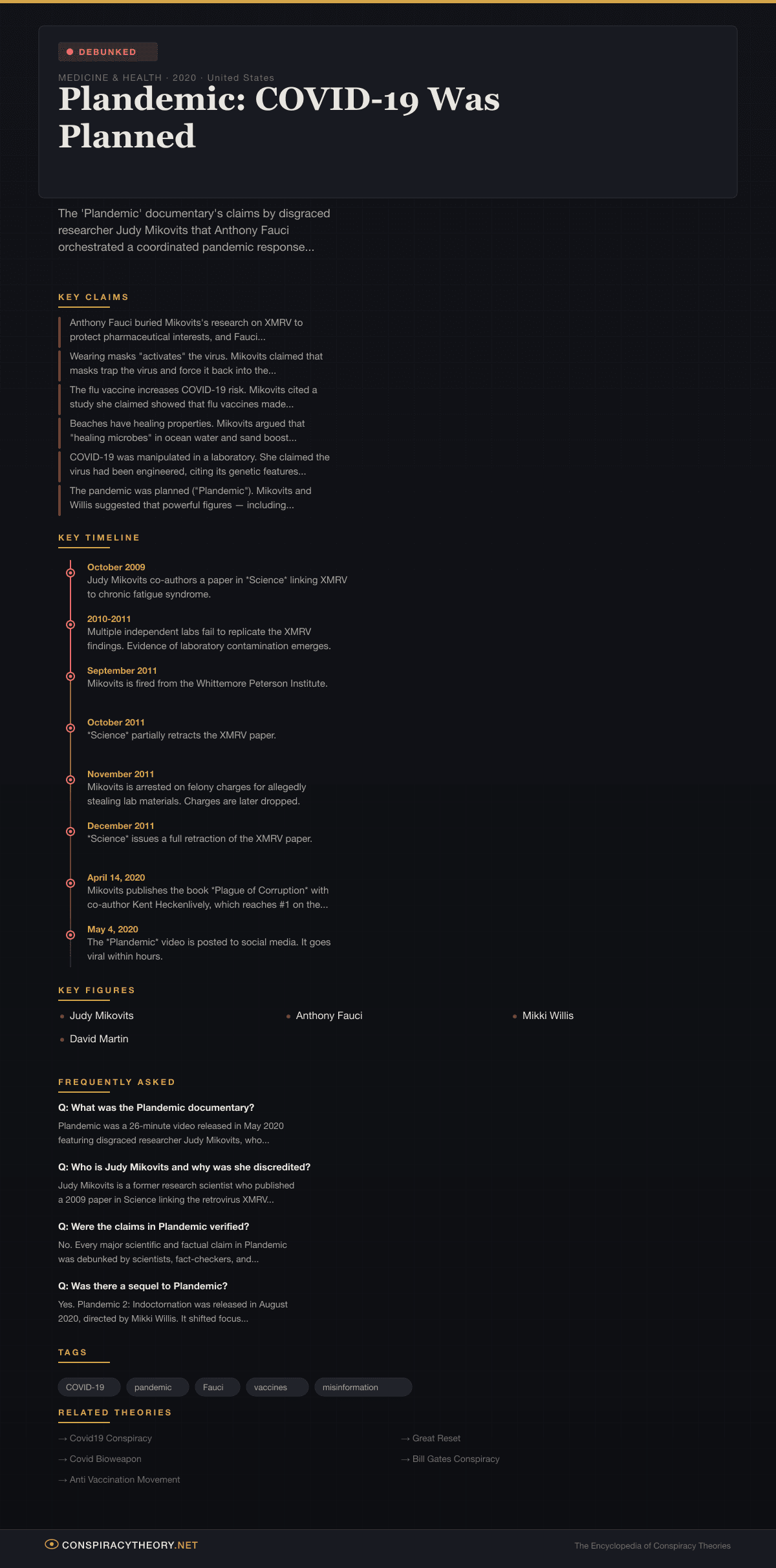 - COVID-19 Conspiracy Theories — The broader ecosystem of pandemic conspiracy claims