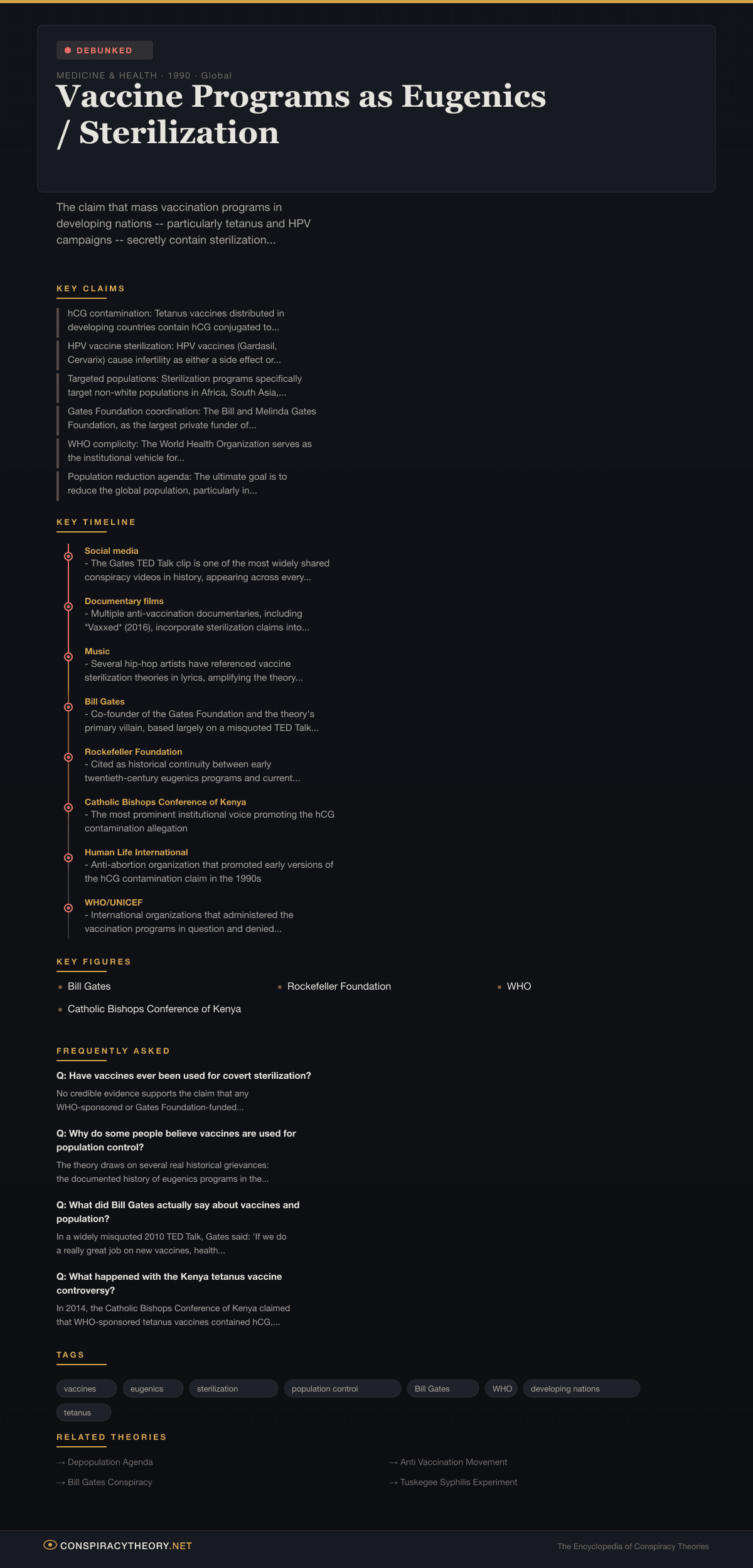 Important caveat: Classifying this theory as debunked does not mean dismissing the legitimate historical grievances that give it traction. The history of medical experimentation on marginalized populations is real. The appropriate response is not to deny that history but to insist on rigorous evidence standards when evaluating specific current claims.