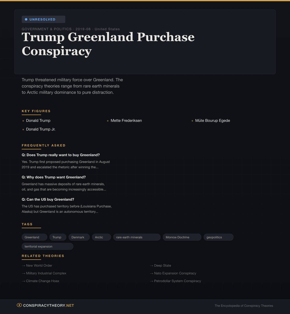 The conspiracy theories came fast and from every direction. This was a rare earth mineral heist. This was about controlling Arctic shipping lanes before China and Russia locked them down. This was the military-industrial complex extending its reach to the top of the world. This was a distraction from domestic scandals. Or maybe — and this is the part that keeps analysts up at night — it was all of those things simultaneously, a convergence of real strategic interests wrapped in the chaotic packaging of Trumpian diplomacy.