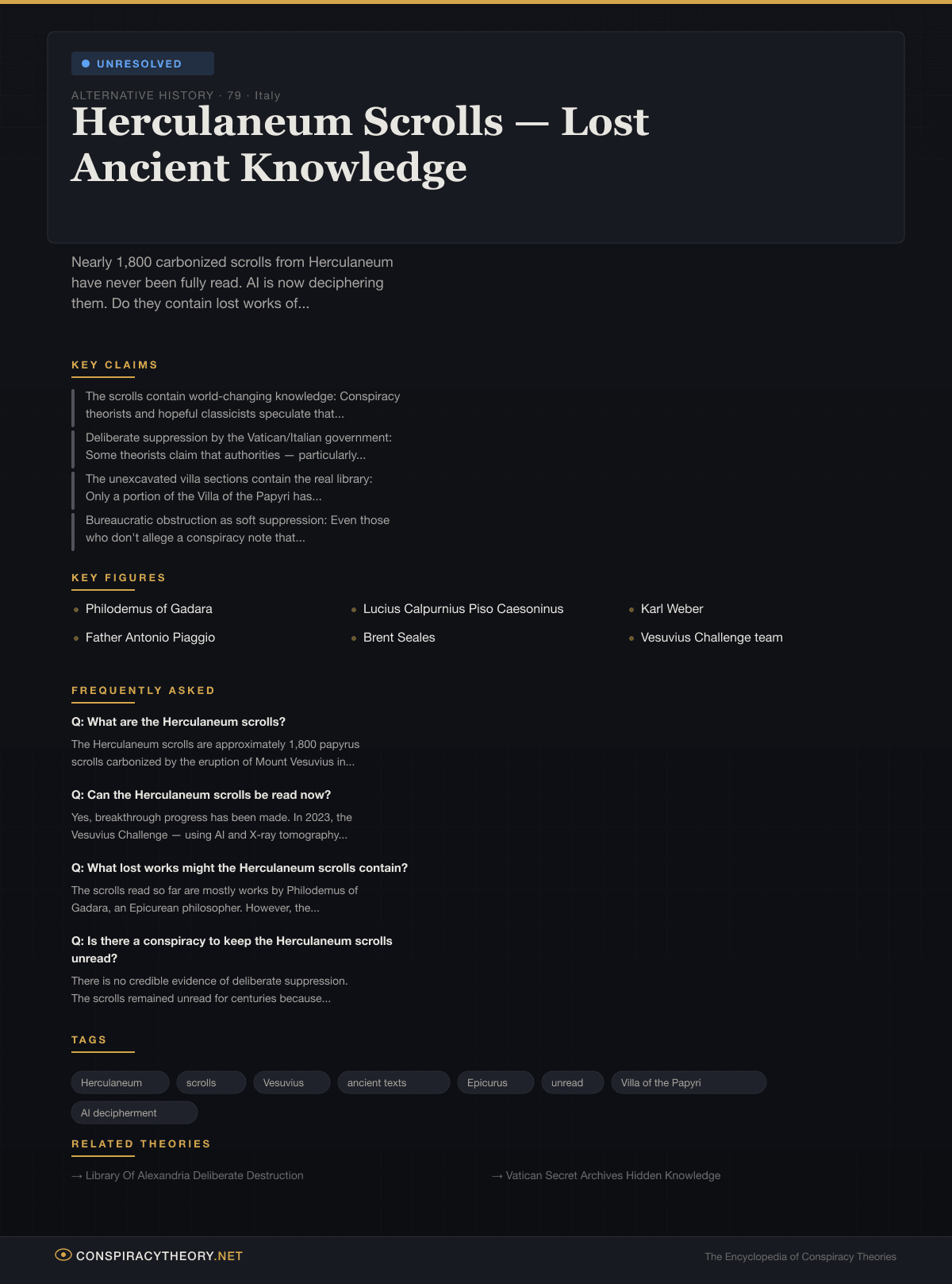 - Library of Alexandria Destruction — The legendary loss of the ancient world’s greatest library, and theories about what knowledge was lost