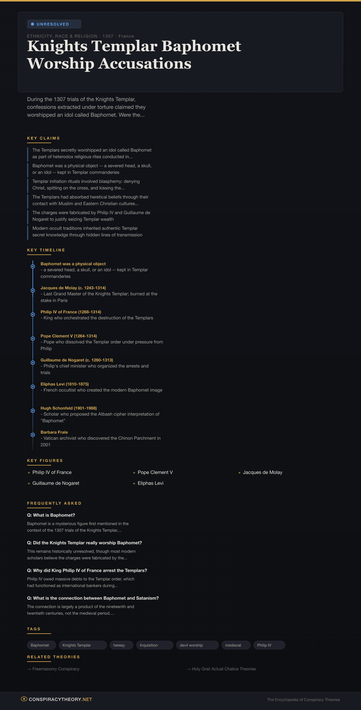 - The Templars secretly worshipped an idol called Baphomet as part of heterodox religious rites conducted in private chapter meetings