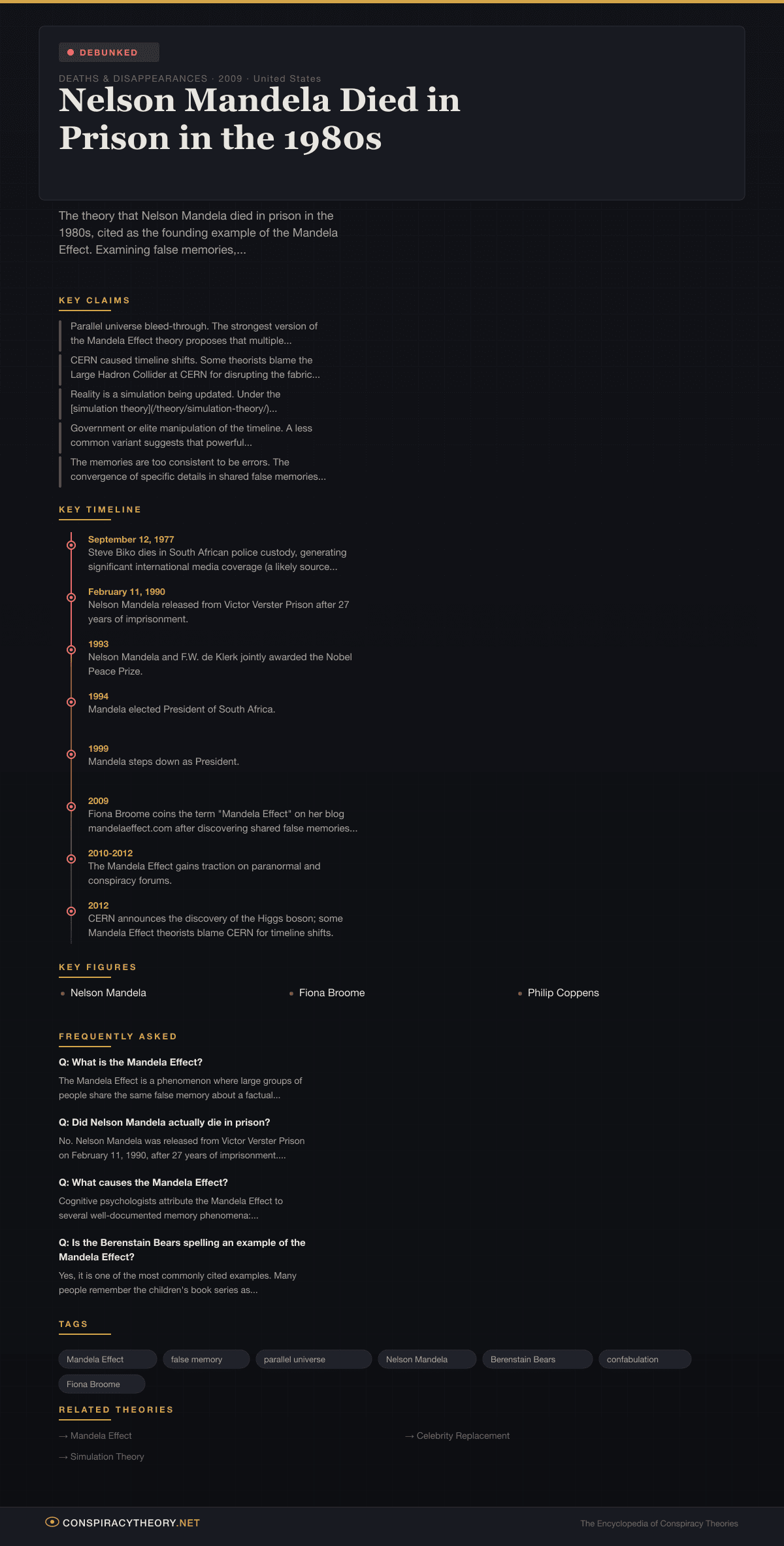 The Mandela Effect is debunked as a theory about reality (no, you are not experiencing bleed-through from a parallel universe where Nelson Mandela died in prison). But it is profoundly interesting as a phenomenon of human cognition — a window into how memory actually works, which is nothing like how we think it works.