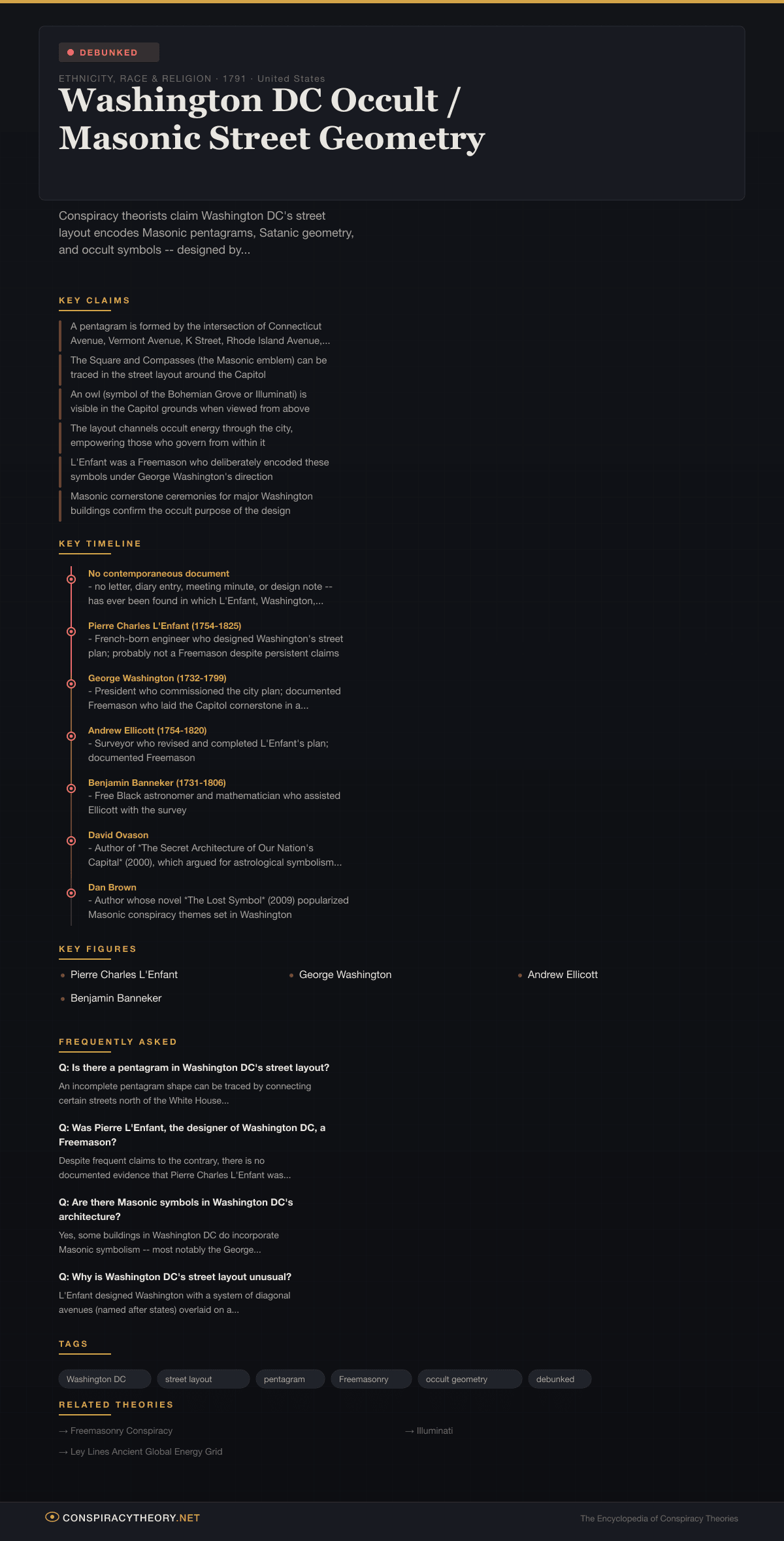 The claim that Washington’s street layout encodes Masonic or Satanic symbolism is not as old as the city itself. It appears to have emerged in the late twentieth century, gaining traction through several vectors: