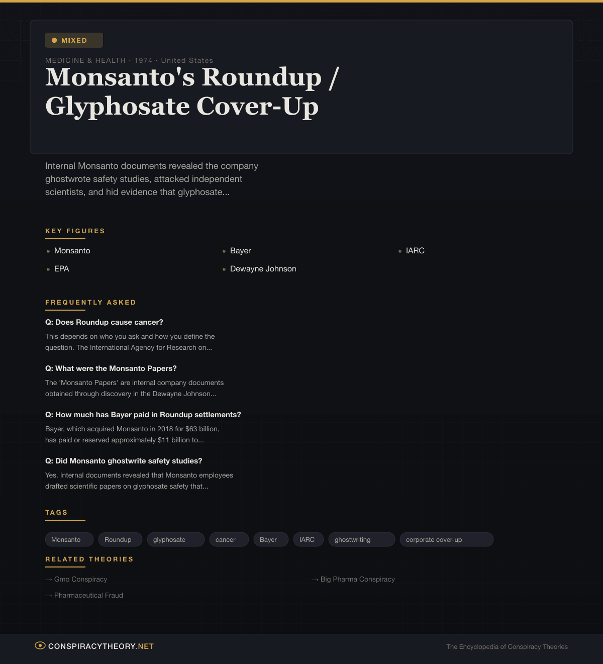 - GMO Conspiracy — Broader anti-GMO movement, intertwined with Roundup concerns