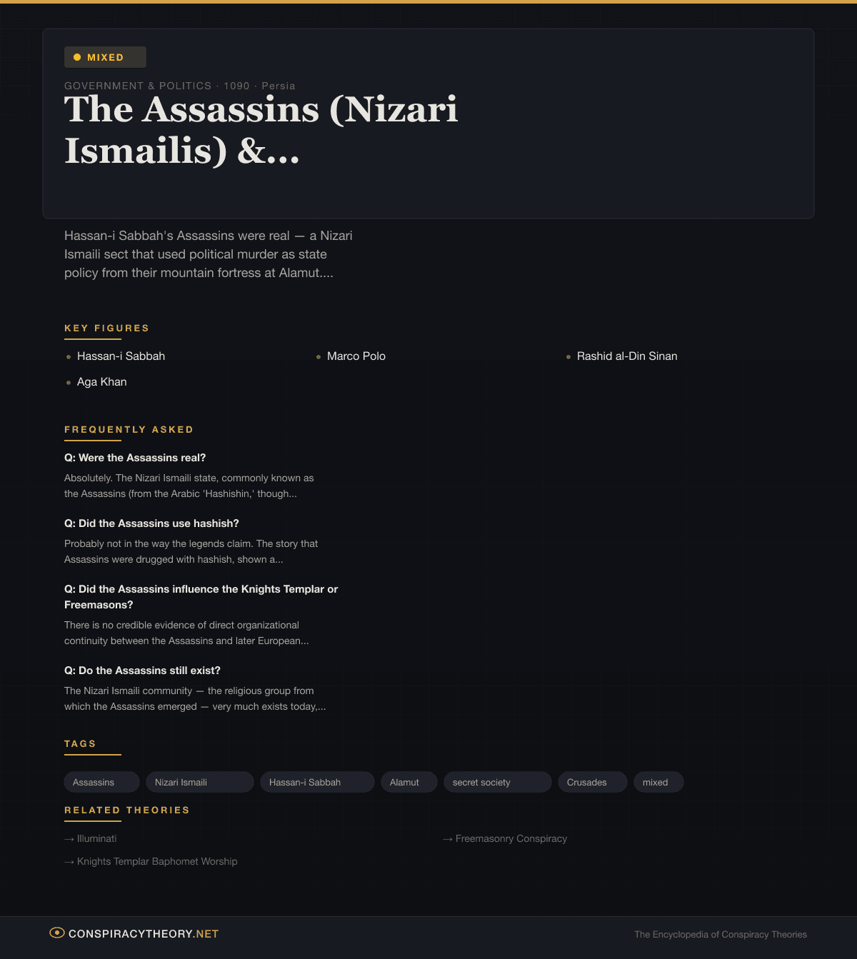 It’s a compelling story. It happens to be unsupported by evidence. But separating the genuinely fascinating history of the real Assassins from the conspiracy theories that have attached themselves to it requires understanding both.