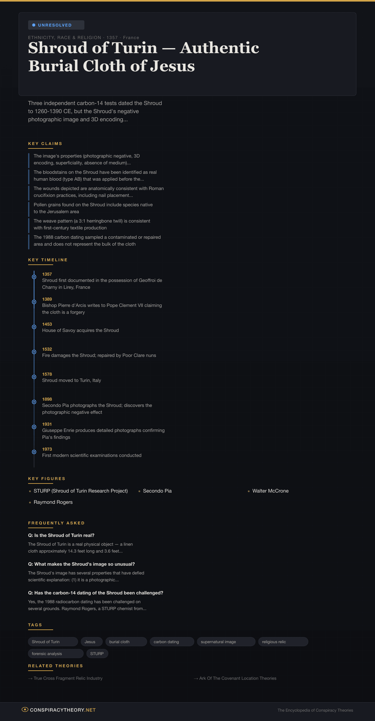 The Shroud is genuinely one of the most studied artifacts in human history, with peer-reviewed research supporting arguments on both sides. Resolution would require new radiocarbon dating from multiple locations on the cloth — something the Vatican has not authorized since 1988.