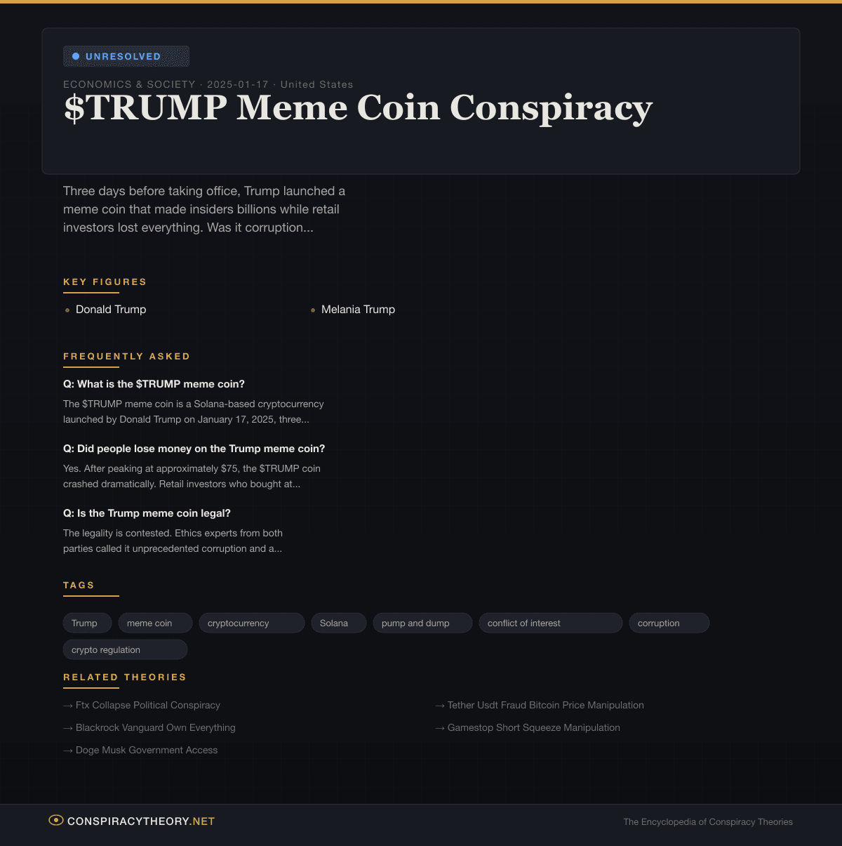 The $TRUMP meme coin story remains unresolved not because the facts are unclear, but because the system designed to answer the hard questions has been disabled by the person the questions are about.