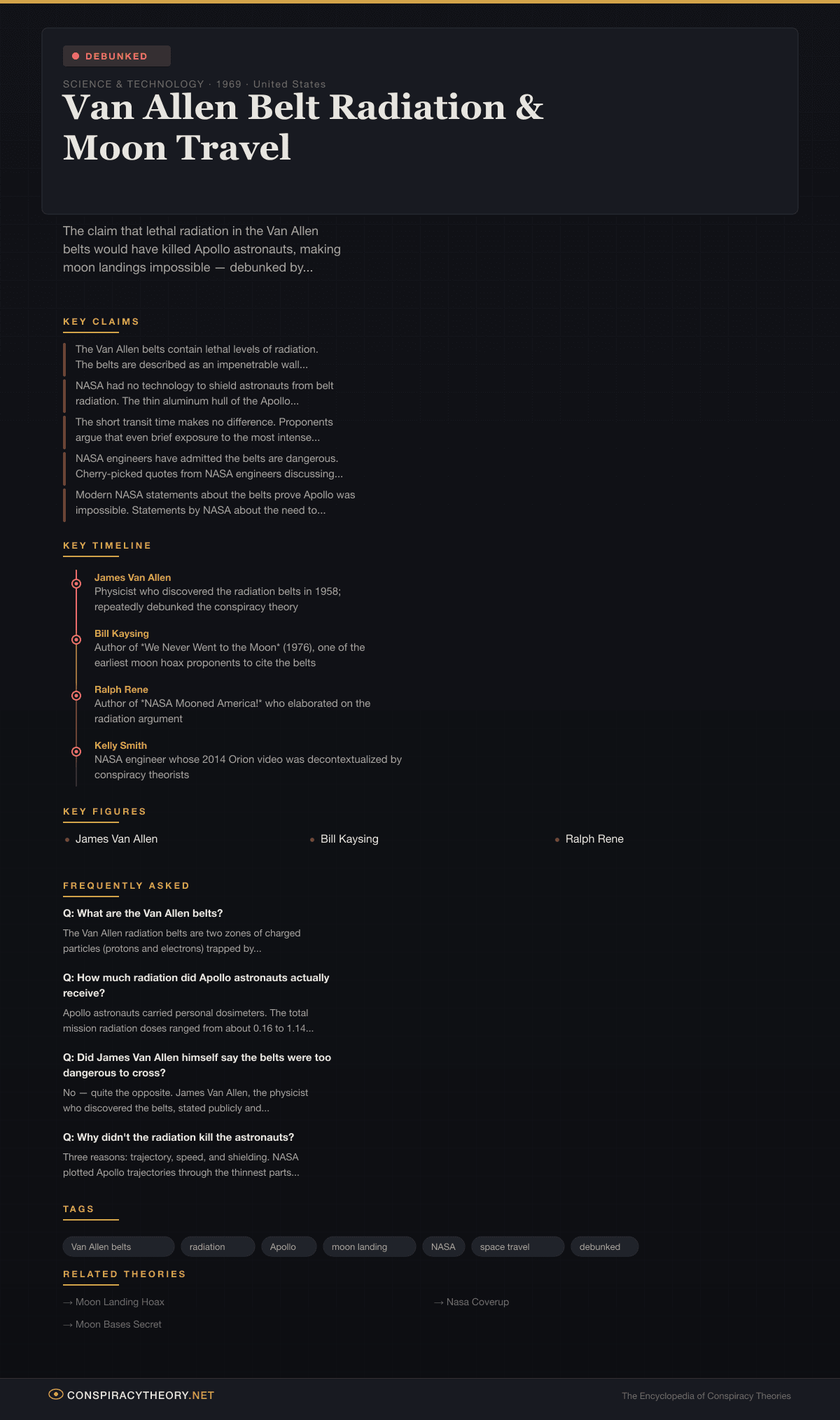 - Moon Landing Hoax — the broader conspiracy theory that the Van Allen argument supports